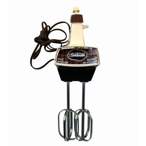 Classic vintage Sunbeam Mixmaster electric hand mixer with 5-speed control, burst of power and durable beaters for efficient mixing. Lightweight, compact design for convenient kitchen use.