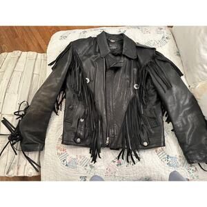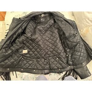 VINTAGE SUPER HEAVY FRINGED LEATHER BIKER MOTO JACKET W/ THICK QUILTED LINING
