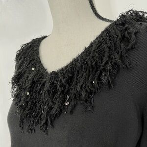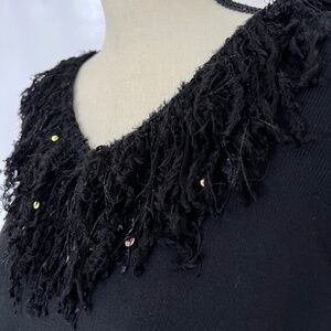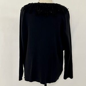 SUSAN BRISTOL Black V Neck Pullover Sweater Embellished Neckline Sz 1X in excellent condition.