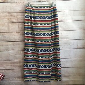 EXCELLENT CONDITION VINTAGE SUSAN BRISTOL WRAP MAXI SKIRT IN AZTEC PRINT