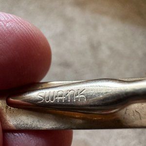 VINTAGE SWANK GOLD TONE SQUARE CENTER MOTHER OF PEARL CUFFLINKS & TIE BAR