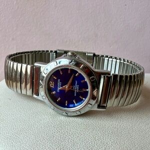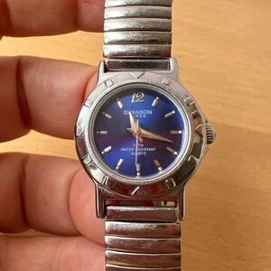 VINTAGE SWANSON JAPAN LADIES WATCH SILVER TONE STRETCH BRACELET NEW BATTERY