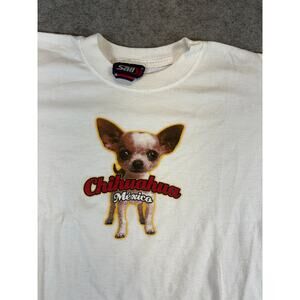 VINTAGE Sail Chihuahua Mexico Shirt Mens XS White Graphic Dog Souvenir Tee Y2K