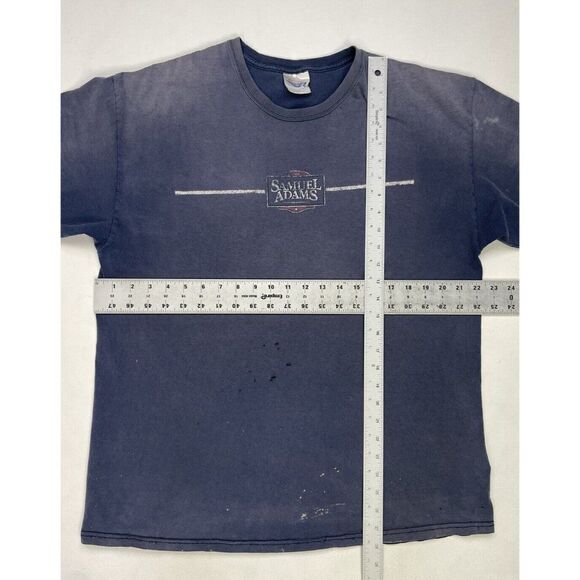 VINTAGE Samuel Adams Beer Thrashed Distressed Faded T-shirt Men XL Blue