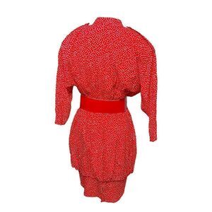 VINTAGE Scarlett Pinup Dress Red White Polka Dots Belt Bubble Waist 9