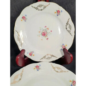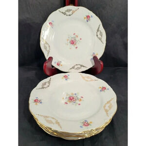 VINTAGE Schirnding Bavaria, 7.5" GOLD GILT FLORAL FLOWER PORCELAIN PLATE Set 6.