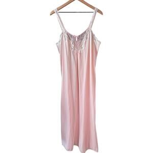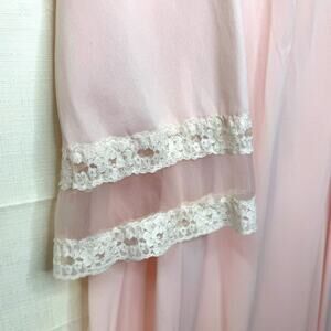 VINTAGE Sears Pajama Set Size L Pink Robe Nightgown Lace Embroidery Made in USA