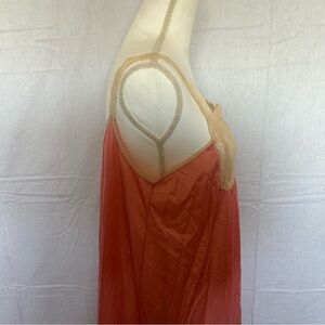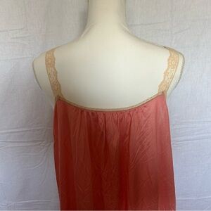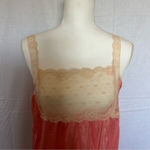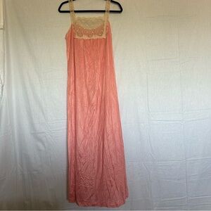 VINTAGE Sears Peach Lace Babydoll 70s Slip Dress Maxi floor length long satin