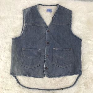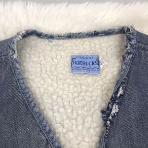 VINTAGE Sears Roebuck Denim Trucker Vest Sherpa Distressed Destroyed Size Medium