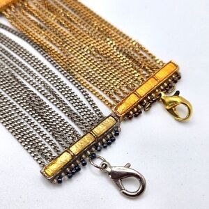 VINTAGE Seed Bead and Metal Chain Multi-Strand Bracelet Set Silver and Gold Tone