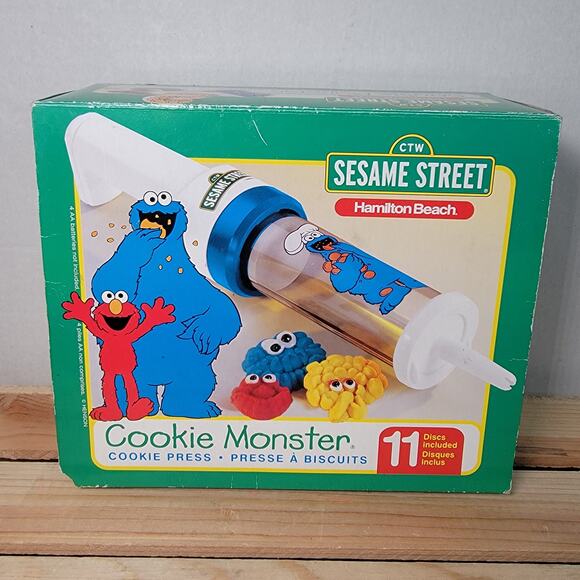 VINTAGE Sesame Street X Hamilton Beach Cookie Monster Cookie Press (1998). Excellent condition. Complete. Comes from a smoke free home.