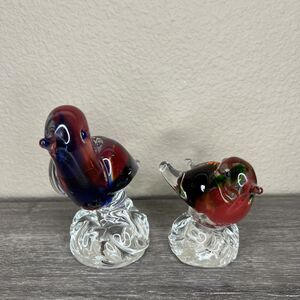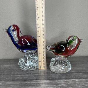 VINTAGE Set Of 2 MURANO Style Art Glass Figurine Birds Paperweight Colorful