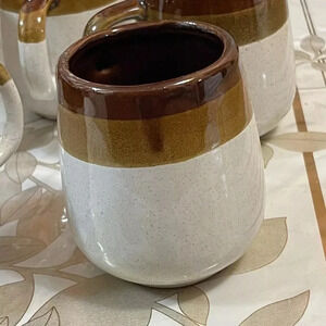 VINTAGE Set Of 5 Old Clay Pottery Mugs/ Cups Glazed Beige Brown Handmade Taiwan