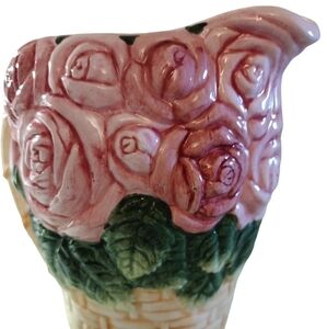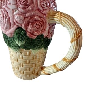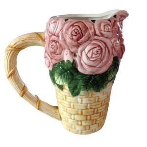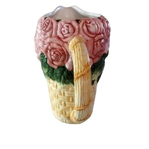 Vintage Seymour Mann Rose Bouquet Pitcher. Hand painted especially for Seymour Mann. 1988 Rose Bouquet Basket weave pitcher stands at 7" H x 3" W. No cracks or chips in excellent condition & the perfect addition to the Rose Bouquet Collection.