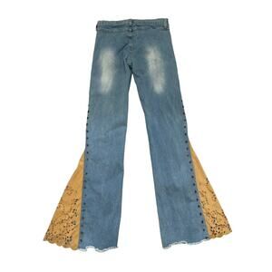 Keywords: vintage flare jeans, boho festival denim, grommet jeans, 90s Y2K jeans, retro wide leg, hippie jeans, western style denim, Sharagano jeans, unique statement pants, fall festival outfit