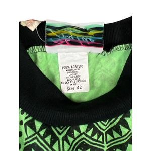 VINTAGE Shirt Men 42 Large Green Sky Lite Pullover Neon Tribal 90s Preppy X