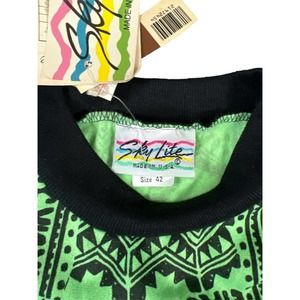 VINTAGE Shirt Men 42 Large Green Sky Lite Pullover Neon Tribal 90s‎ Preppy