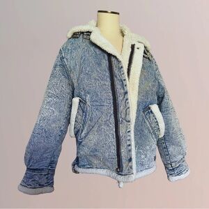 Vintage 80s oversized Forenza acid washed denim Sherpa lined jacket! Made in Italy