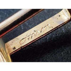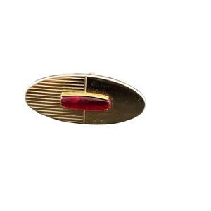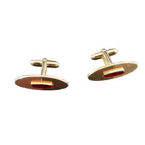 Presenting these Vintage Signed Anson Gold-Tone with Red Inset Cufflinks. Oval shape with engraved and smooth surface and red inset of unknown material. Marked “Anson” and ready to wear.