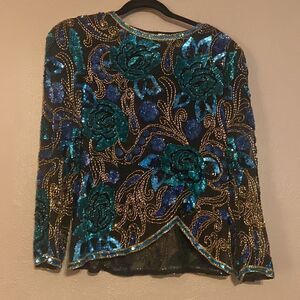 VINTAGE Silk Beaded Evening Blouse Nite Line Size 10