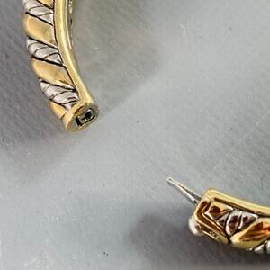 VINTAGE bracelet in a silver tone and gold tone metal featuring a textured two tone braided design, and push lock closure with hinge.