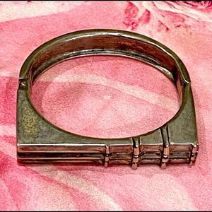 This is a fabulous, weighty authentic vintage bangle from sometime between the 40a and the 80s 😅😁. No markings of origin, just great craftsmanship! I believe it’s European in origin. Great for any size wrist! Shiny and edgy, so cool and one of a kind!