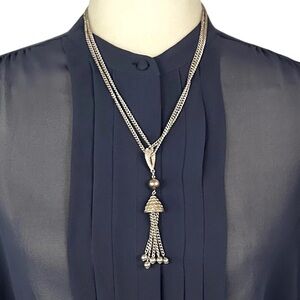 OS VINTAGE Silver Tasseled Pendant Rope Necklace