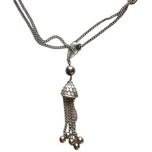 VINTAGE Silver Tasseled Pendant Rope Necklace