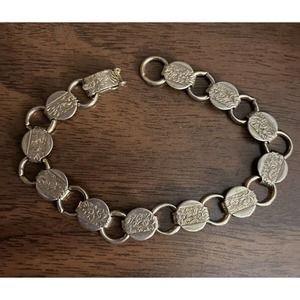 VINTAGE Silver Tone/Antique Flower Garden SARAH COV COVENTRY Link Bracelet.