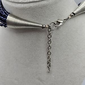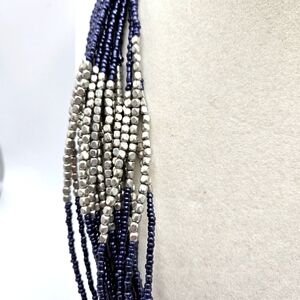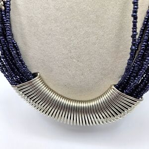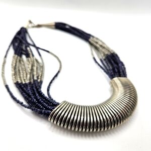 VINTAGE Silver and Navy Blue Seed Bead Statement Necklace Boho