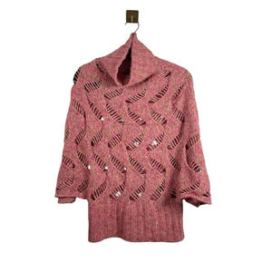 VINTAGE Sisley Open Knit Mock Neck Sweater Poncho in Pink Multi OS