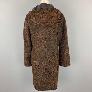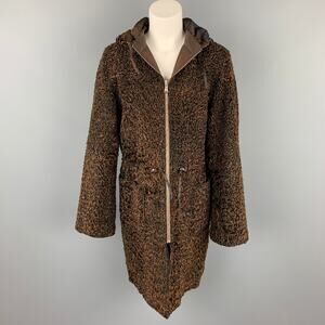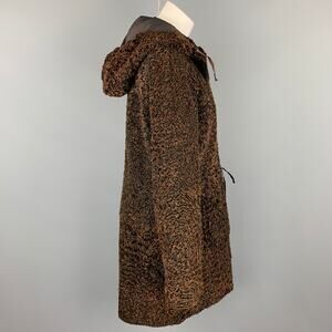 VINTAGE Size M Brown Stripe Astrakhan Fur Reversible Hooded Jacket