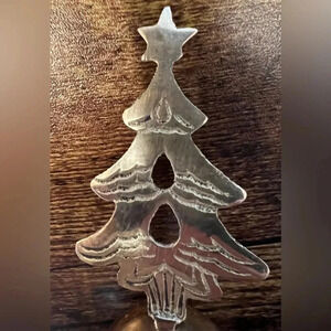 VINTAGE: Solid brass bell. Flat Christmas tree with a star on top. Solid, shiny brass. Rings perfectly. 5” tall by 2.5” wide. Beautiful vintage bell in very good condition.