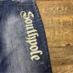 VINTAGE Southpole Jeans Juniors 11 Blue Bootcut Flare Embellished Spellout Y2K