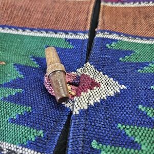 Vintage Museum of Fine Arts Boston Aztec print vest. Woven design on front with solid black back. Wood toggle button close and front pockets. Adjustable strap on back for the perfect fit. Material is 100% cotton. Made in Guatemala.