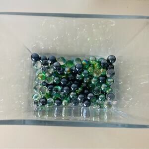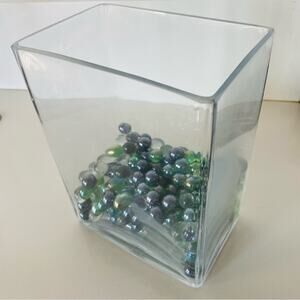 VINTAGE Square Rectangle Aquarium Glass Vase Green Round Pebble Marbles Decor