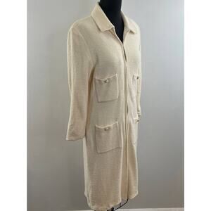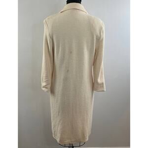 VINTAGE St John Cream Long Line Duster Wool Four Pocket Sweater Coat 10 FLAW VTG