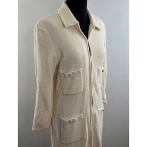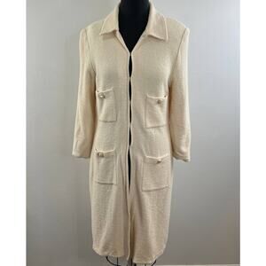 Vintage St. John Cream Long Sleeve Long Line Wool Four Pocket Coat
