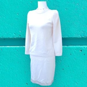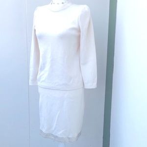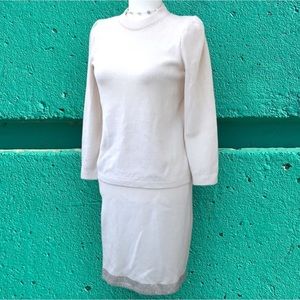 Vintage St John Evening by Marie Gray cream ecru sweater sequin skirt set St. John Santana Basics knit formal evening vacation cocktail ivory fancy