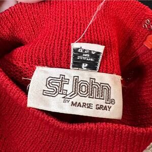 VINTAGE St. John color block long sleeve knit Mini dress red black sz 6