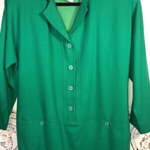VINTAGE Stanley Beautiful Green Raglan Sleeve Button Front Double Pocket Dress