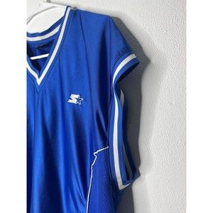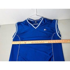 VINTAGE Starter Logo Jersey Men's Top Sz L Blue Athletic Tank Side Zip