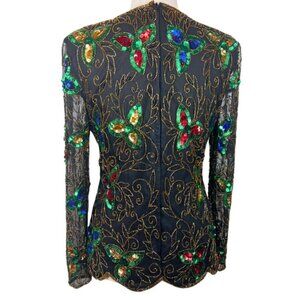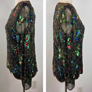 VINTAGE Stenay Beaded Sheer Sleeve Blouse Size S