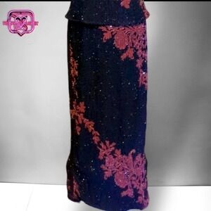 VINTAGE Stenaz Retro Floral Beaded Pageant Gown, 8