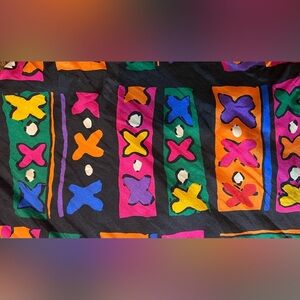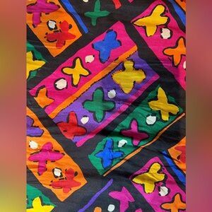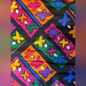 Womens silk scarf. Rolled edges. Good used condition. Beautiful, vibrant, pop art print, X’s. Soft. Good, used condition- there is 1 small tear in the hemmed edge, see picture. No tags.