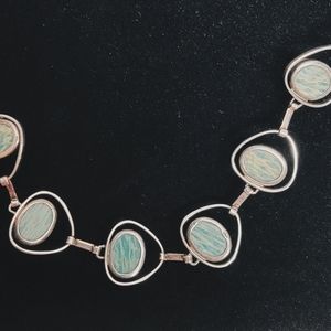 VINTAGE Sterling Silver Bracelet with Amazonite Cabachons