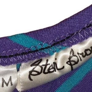 VINTAGE STEVI BROOKS Striped Shoulder Tie Bodysuit. Indigo base color with turquoise stripes. Made in USA. Style 1110, Cut 275. Women's size Medium