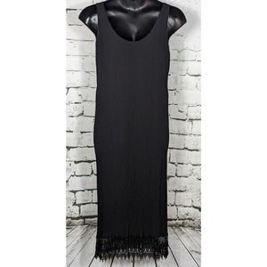 VINTAGE Stretch Rayon Crepe Maxi Column Dress Black One Size Large