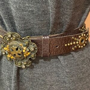 This vintage studded belt adds edgy flair with its bold studs and classic design, perfect for completing any casual or rocker-inspired look.