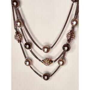 VINTAGE Stunning Layered Brown Pearl Necklace with Lobster Clasp